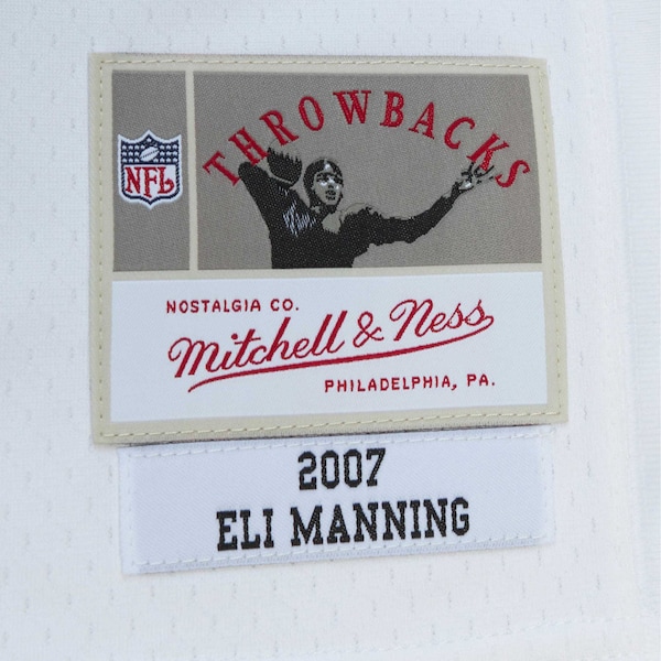 You're a massive New York Giants fan and also loved watching Eli Manning play. Now you can show off your fandom for both when you get this Eli Manning New York Giants Legacy replica jersey from M & N. It features distinctive throwback New York Giants graphics on the chest and back. perfect for wearing at a home game. By wearing this jersey. you'll be able to feel like you're reliving some of the great plays that Eli Manning accomplished to lead the New York Giants to glory.