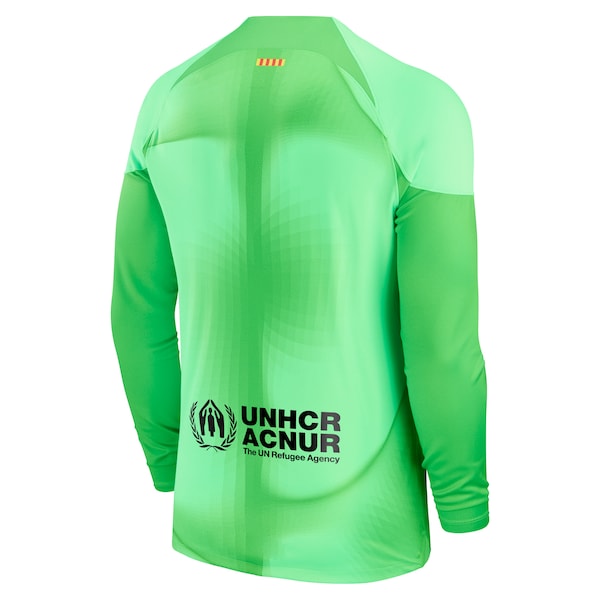 Your unwavering Barcelona fandom will be on display when you add this Stadium Replica Goalkeeper Jersey to your wardrobe. This Nike gear features Dri-FIT technology to ensure you stay dry and comfortable in the warmest temperatures. The crisp Barcelona graphics will have you hype for kickoff and ready to support your favorite shot-stopper when they take the pitch.