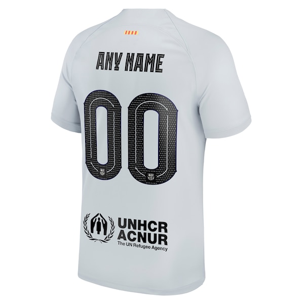 You'll be pumped up to support Barcelona when you sport this 2022/23 Third Breathe Stadium Replica Custom Jersey. This Nike jersey features Dri-FIT technology that is sure to keep you dry and comfortable for all 90 minutes of the match. Its replica design and Barcelona graphics will have you feeling like you're part of the squad when Barca takes the pitch on matchday.