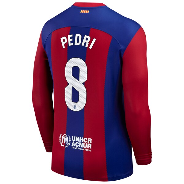 Look and feel like the real deal by adding this Pedri 2023/24 Replica Long Sleeve Jersey to your game day wardrobe. This Nike jersey features Dri-FIT technology that keeps you dry and comfortable for all 90 minutes of the match. Its iconic design and Barcelona graphics will have you feeling like you're part of the squad when the team takes the pitch on matchday.