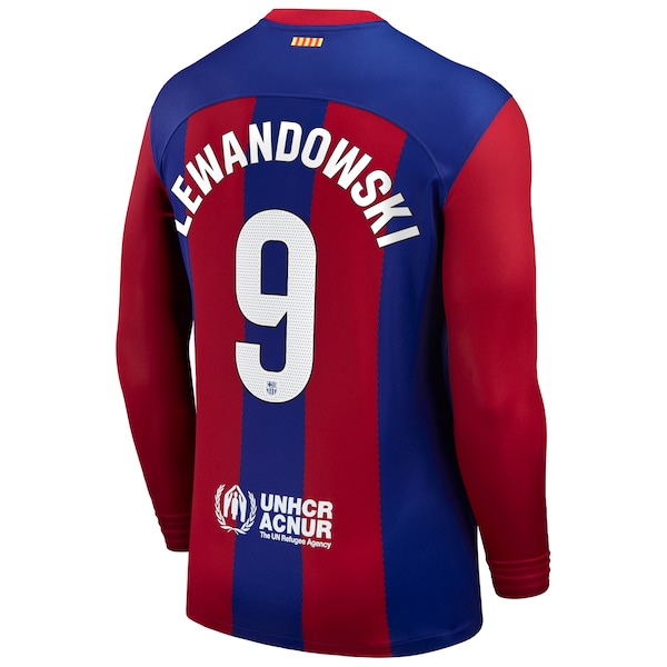 Look and feel like the real deal by adding this Robert Lewandowski 2023/24 Replica Long Sleeve Jersey to your game day wardrobe. This Nike jersey features Dri-FIT technology that keeps you dry and comfortable for all 90 minutes of the match. Its iconic design and Barcelona graphics will have you feeling like you're part of the squad when the team takes the pitch on matchday.
