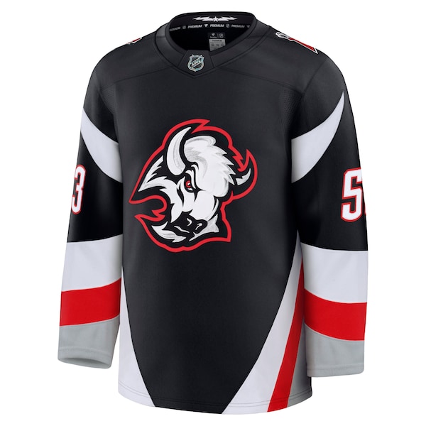When you're watching the on-ice action. you need a jersey to match. With this Buffalo Sabres Fantics Alternate Premium Jersey you get just that! This premium jersey is made for the loyal Buffalo Sabres fan like you and takes inspiration from what your team wears on gameday. Available in traditional colors. this Jeff Skinner jersey possesses a more adjusted fit and mesh panels to enhance your comfort no matter where you enjoy the game!