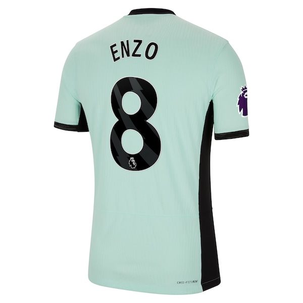 Look and feel like your favorite Chelsea player on match day with this Enzo Fernández 2023/24 Third Match Authentic Player Jersey. This Mint jersey. part of Chelsea's third kit this season. is designed to the exact same specifications as the ones the players wear on the pitch. The Nike Dri-FIT ADV will keep you dry and comfortable wherever you watch The Blues.