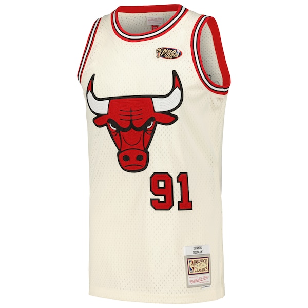 Rep one of your all-time favorite pros with this Dennis Rodman Chainstitch Swingman Jersey from M & N. The throwback Chicago Bulls details are inspired by the franchise's iconic look of days gone by. Every stitch on this jersey is tailored to exact team specifications. delivering outstanding quality and a premium feel.