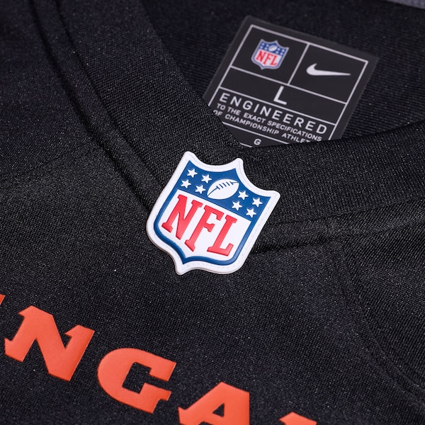 Channel your Cincinnati Bengals spirit with this Kris Jenkins Jr. Team Game Jersey from Nike. This jersey is designed for movement and features mesh side panels for extra breathability. allowing you to stay cool and comfortable. The sewn-on NFL Shield at the collar and satin twill woven jock tag at the hem provide authentic finishing touches. while the heat-sealed name. numbers and team details showcase your Cincinnati Bengals pride.