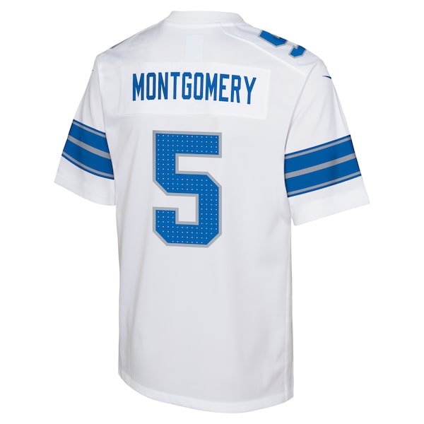 Bring your young fan closer to the action with this Detroit Lions David Montgomery Player Game Jersey from Nike. This David Montgomery jersey features screen-printed name. numbers. and team details that stand out against the crisp white background. ensuring your young fan is ready to cheer on the Lions in style. With mesh side panels for enhanced breathability and a design that prioritizes movement. this jersey ensures your young fan stays cool and comfortable while representing their favorite team.