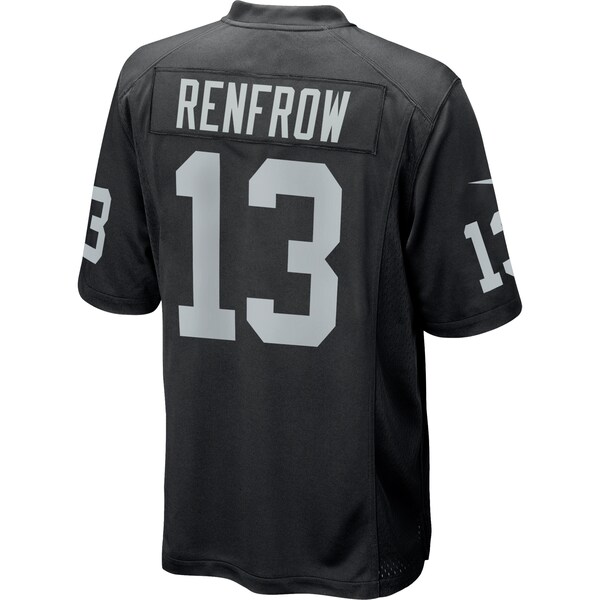 Rep the on-field look of your favorite Las Vegas Raiders player with this Hunter Renfrow Game jersey from Nike. Its heat-sealed name. numbers and team details provide a kickoff-ready aesthetic while also offering a comfortable. lightweight feel. Designed for everyday movement. this jersey has a versatile tailored fit and features mesh side panels for added ventilation as you celebrate every big play by the Las Vegas Raiders this season.