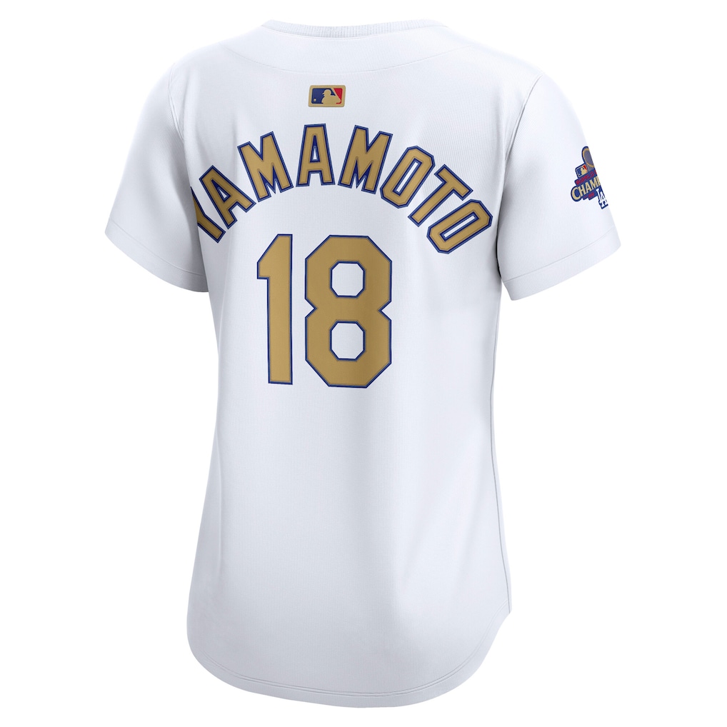 - Yoshinobu Yamamoto Los Angeles Dodgers Nike Women's 2025 Gold Collection Limited Jersey - White