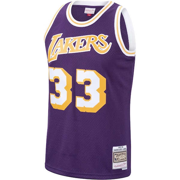 Rep one of your all-time favorite pros with this Kareem Abdul-Jabbar Swingman jersey from M & N. The throwback Los Angeles Lakers details are inspired by the franchise's iconic look of days gone by. Every stitch on this jersey is tailored to exact team specifications. delivering outstanding quality and a premium feel.