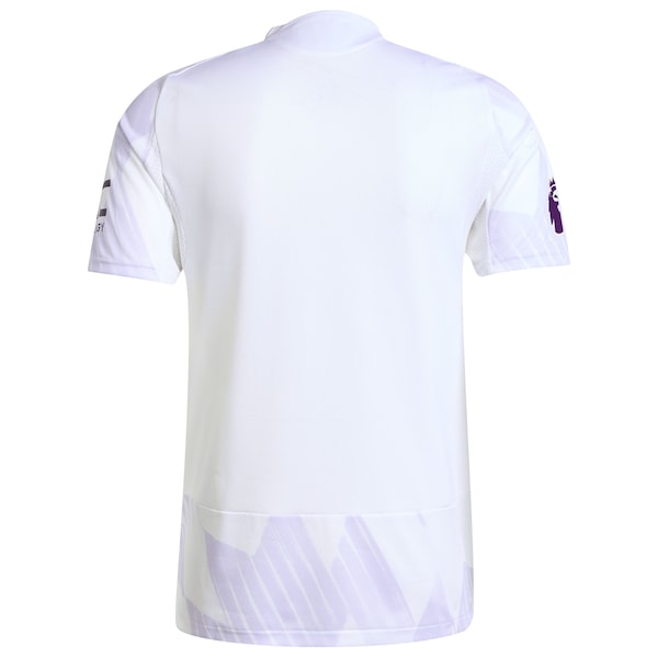Look and feel like the real deal when you add this 2025/26 Away Authentic Jersey to your Manchester United collection. This adidas gear features HEAT.RDY technology as well as ventilated. mesh panels that work together to keep you dry and comfortable all game long. Its exciting Manchester United graphics match what your favorite players wear and will get you pumped to cheer them on as they take the pitch.