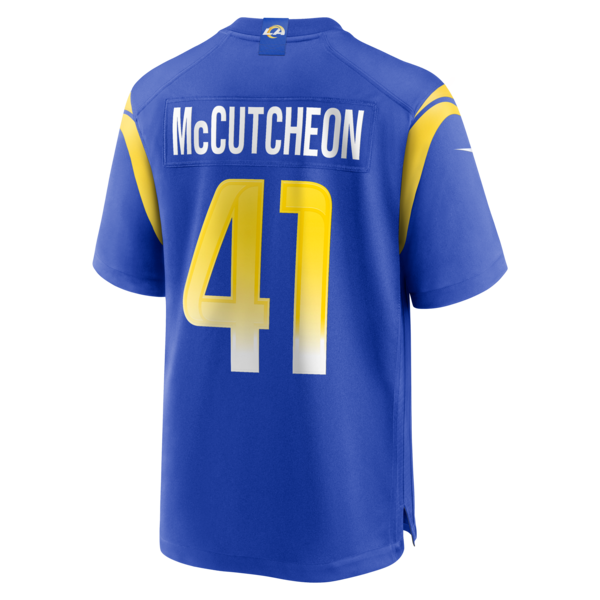 Made for the enthusiastic Los Angeles Rams fan who wants to represent the team with ease. grab this Cameron McCutcheon by Nike. Its name and number graphics provide a kickoff-ready aesthetic while also offering a comfortable. lightweight feel. Designed for everyday movement. this jersey has a loose fit and features mesh side panels for added ventilation as you celebrate every big play by Cameron McCutcheon this season.