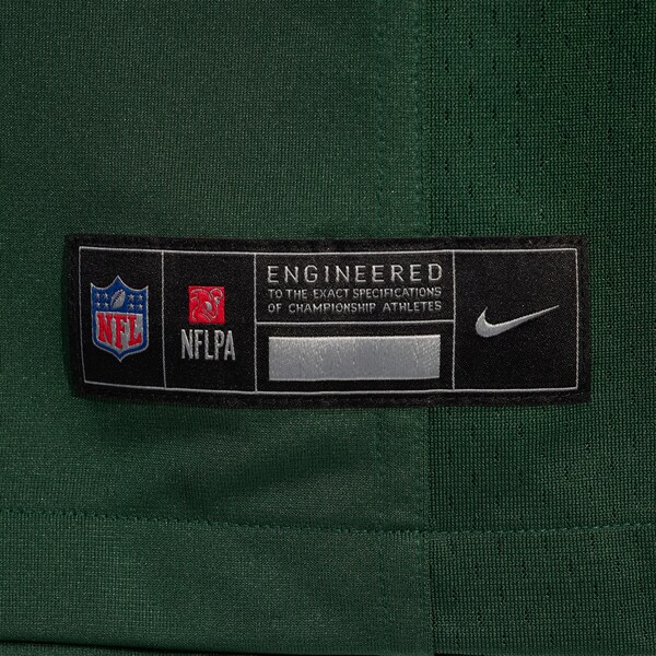 Channel your Green Bay Packers spirit with this Edgerrin Cooper Team Game Jersey from Nike. This jersey is designed for movement and features mesh side panels for extra breathability. allowing you to stay cool and comfortable. The sewn-on NFL Shield at the collar and satin twill woven jock tag at the hem provide authentic finishing touches. while the heat-sealed name. numbers and team details showcase your Green Bay Packers pride.