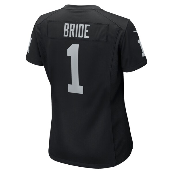 Commemorate the happiest day of your life with Las Vegas Raiders flair in this Number 1 Bride Game jersey from Nike. Its heat-sealed graphics provide a kickoff-ready aesthetic while also offering a comfortable. lightweight feel. Designed for everyday movement. this jersey has a tailored fit and features mesh side panels for added ventilation as you celebrate every big play the Las Vegas Raiders make this season. I now pronounce you ready for game day.