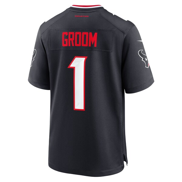 Commemorate the happiest day of your life with Houston Texans flair in this Number 1 Groom Game jersey from Nike. Its heat-sealed graphics provide a kickoff-ready aesthetic while also offering a comfortable. lightweight feel. Designed for everyday movement. this jersey has a tailored fit and features mesh side panels for added ventilation as you celebrate every big play the Houston Texans make this season. I now pronounce you ready for game day.