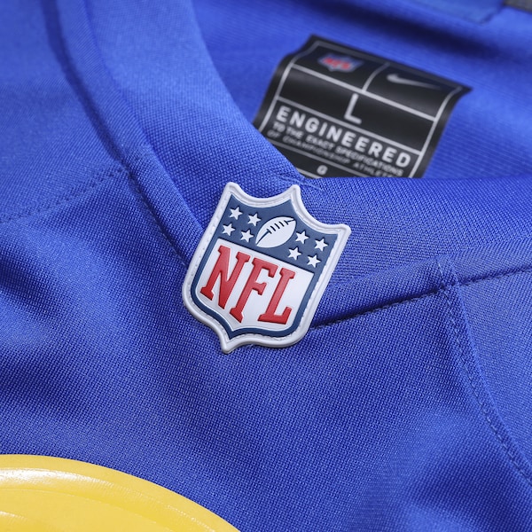 This Poona Ford Nike Game Jersey is an essential piece of gear for any Los Angeles Rams fan looking to highlight their favorite player. The heat-sealed name. number and team details provide a kickoff-ready look that elevates your excitement for game day. Made with comfort in mind. this Los Angeles Rams Team replica jersey delivers a standard. lightweight fit and features breathable mesh side panels for added ventilation.