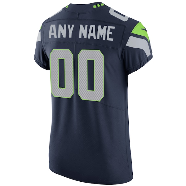 We want fans to celebrate their fandom by customizing and personalizing certain products. For these customizable products. including jerseys. we invite customers to tell us how they would like their preferred name or other text to appear by typing that text into the field indicated. However. just because a customer is able to type proposed customization text into the field and is able to complete the order through the website. not all proposed customization text will be accepted. Please note. Fanatics may reject and cancel any customization order for any reason. including for messages that are deemed offensive or inappropriate. There's no better way to embrace your fandom for the Seattle Seahawks than with this Vapor Untouchable Custom Elite jersey from Nike!