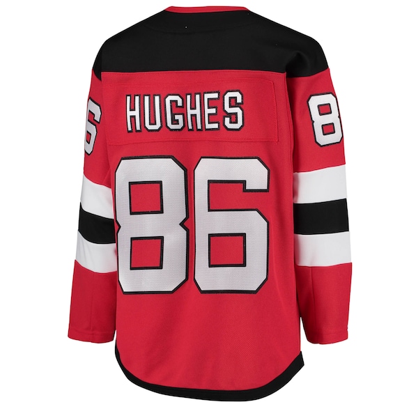 Showcase your youngster's one-of-a-kind swagger and budding hockey fandom with this New Jersey Devils Jack Hughes Premier Player jersey. This piece of gear is just what your kiddo needs for their game day collection. This unique jersey will be a staple in your young fan's New Jersey Devils wardrobe. with its bold design and crisp team graphics.
