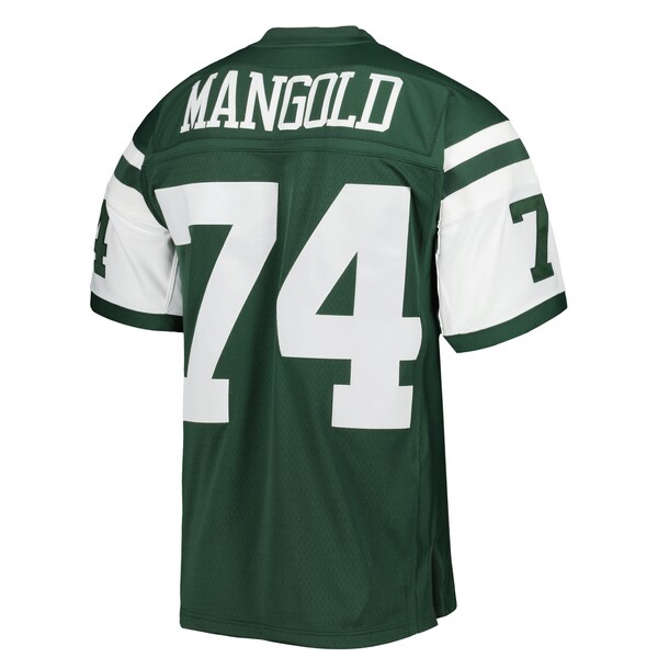 You're a massive New York Jets fan and also loved watching Nick Mangold play. Now you can show off your fandom for both when you get this Nick Mangold New York Jets Legacy replica jersey from M & N. It features distinctive throwback New York Jets graphics on the chest and back. perfect for wearing at a home game. By wearing this jersey. you'll be able to feel like you're reliving some of the great plays that Nick Mangold accomplished to lead the New York Jets to glory.