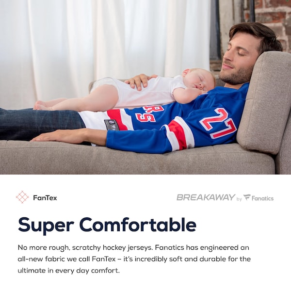 We want fans to celebrate their fandom by customizing and personalizing certain products. For these customizable products. including jerseys. we invite customers to tell us how they would like their preferred name or other text to appear by typing that text into the field indicated. However. just because a customer is able to type proposed customization text into the field and is able to complete the order through the website. not all proposed customization text will be accepted. Please note. Fantics may reject and cancel any customization order for any reason. including for messages that are deemed offensive or inappropriate. Introducing the Breakaway by Fantics - the official jersey made just for the fans. From the world's largest collection of officially licensed gear comes the first jersey inspired and built by fans for fans. We asked NHL devotees what they wanted in a new jersey. We listened and we delivered. creating a jersey with an exclusive set of features designed for the fan.
