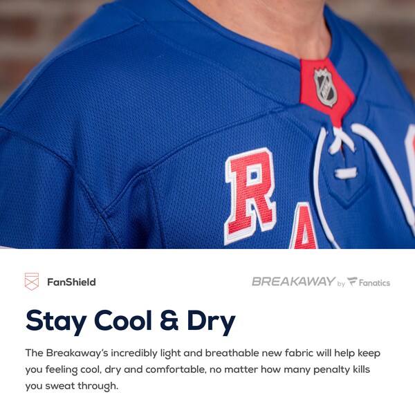 We want fans to celebrate their fandom by customizing and personalizing certain products. For these customizable products. including jerseys. we invite customers to tell us how they would like their preferred name or other text to appear by typing that text into the field indicated. However. just because a customer is able to type proposed customization text into the field and is able to complete the order through the website. not all proposed customization text will be accepted. Please note. Fantics may reject and cancel any customization order for any reason. including for messages that are deemed offensive or inappropriate. Introducing the Breakaway by Fantics - the official jersey made just for the fans. From the world's largest collection of officially licensed gear comes the first jersey inspired and built by fans for fans. We asked NHL devotees what they wanted in a new jersey. We listened and we delivered. creating a jersey with an exclusive set of features designed for the fan.