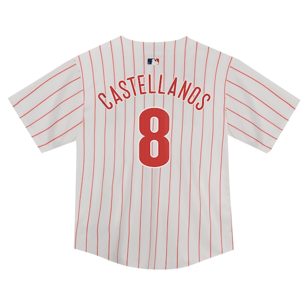 Help your youngster showcase their newfound devotion to the Philadelphia Phillies by wearing this Nick Castellanos Game jersey. Designed by Nike. this jersey is the perfect way for your young fan to show off their excitement for the Philadelphia Phillies. This jersey is inspired and modeled off the same jerseys Nick Castellanos wears on the field. so your kiddo can feel like part of the team.