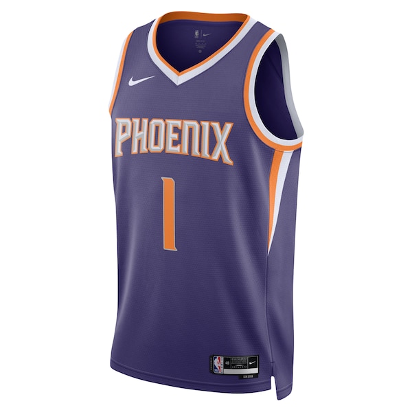 Capture your team's distinct identity in a new and innovative design when you grab this Devin Booker Phoenix Suns Icon Edition Swingman Jersey from Nike. Directly inspired by Nike's Authentic jersey. it features classic trim and team graphics along with Nike's Dri-FIT technology for added comfort. Before you head to the next Phoenix Suns game. grab this incredible jersey so everyone knows your fandom is on the cutting edge.