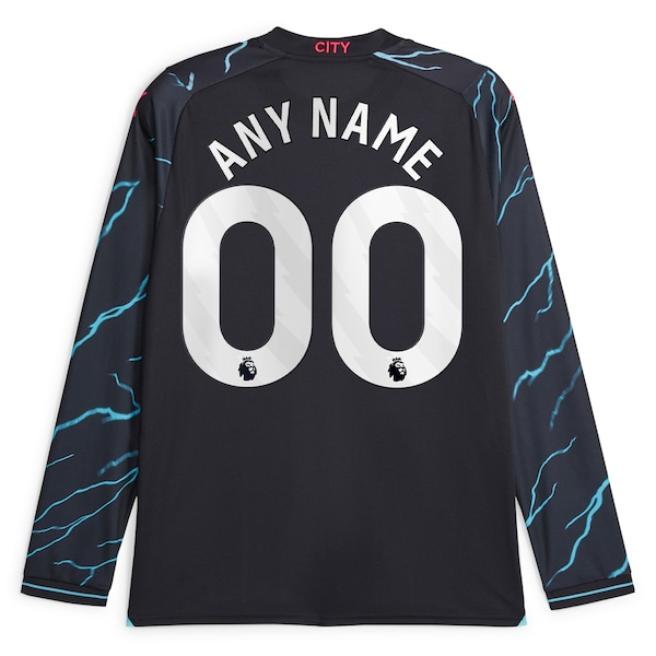 We want fans to celebrate their fandom by customizing and personalizing certain products. For these customizable products. including jerseys. we invite customers to tell us how they would like their preferred name or other text to appear by typing that text into the field indicated. However. just because a customer is able to type proposed customization text into the field and is able to complete the order through the website. not all proposed customization text will be accepted. Please note. Fanatics may reject and cancel any customization order for any reason. including for messages that are deemed offensive or inappropriate. Show your Manchester City pride for every match when you wear this 2023/24 Third Long Sleeve Replica Custom Jersey from Puma. This jersey features DryCELL technology to help keep you dry and cool throughout the day. The sleek Manchester City graphics and designs will make you proud to be a Cityzen whenever you wear it.