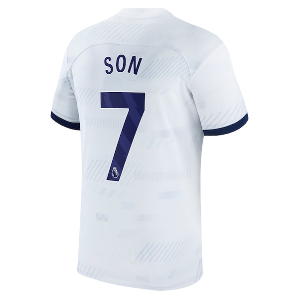 Look and feel like the real deal by adding this Son Heung-min Home 2023/24 Replica Player Jersey to your game day wardrobe. This Nike jersey features Dri-FIT technology that keeps you dry and comfortable for all 90 minutes of the match. Its iconic design and Tottenham Hotspur graphics will have you feeling like you're part of the squad when the team takes the pitch on matchday.