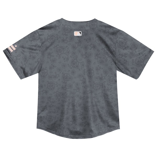 Help your kiddo add a truly unique piece to their Washington Nationals collection with this City Connect Limited Jersey. This special Nike gear is inspired by the Japanese cherry trees that surround the city. These trees were established in 1912 as a gift of friendship from the mayor of Tokyo. The graphics highlight the DC flag. showcasing one of the most powerful cities in the world. a global hub for business and politics.